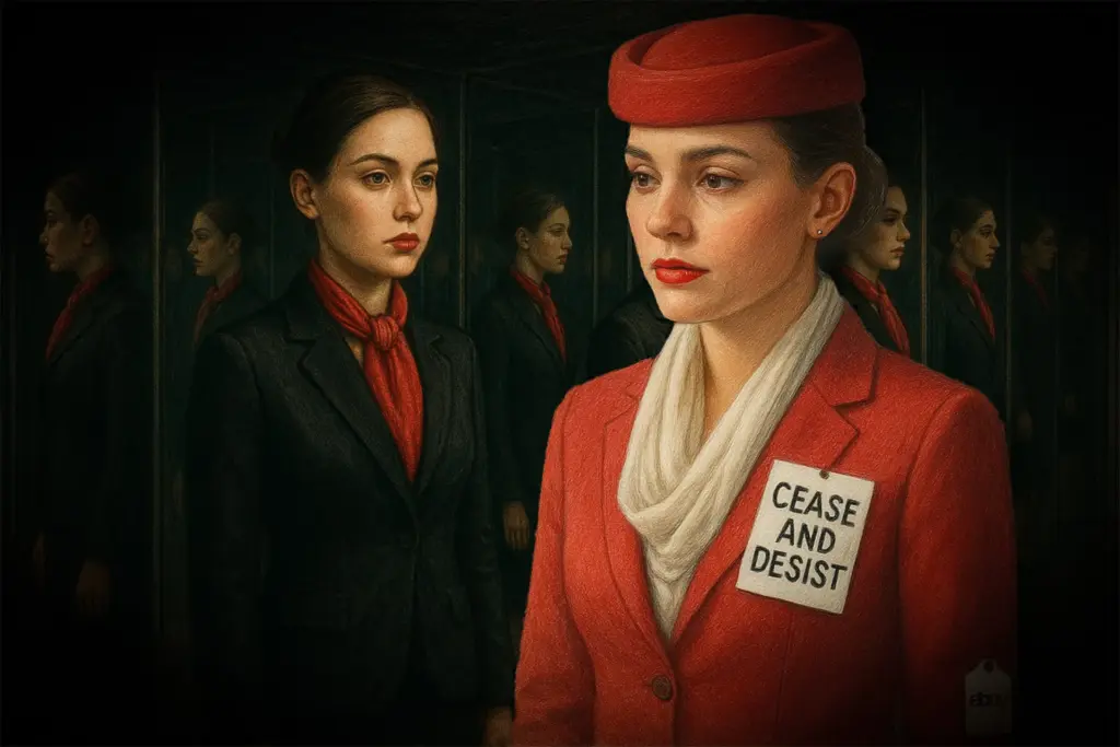 The skirt fits, the jacket doesn’t. The blouse still has a dry cleaning tag with Matilda’s staff number scribbled out. I’ve never worn it to work a flight. But I stare at it on the wall because that unmistakable Virgin red still feels like a promise I haven’t let go.